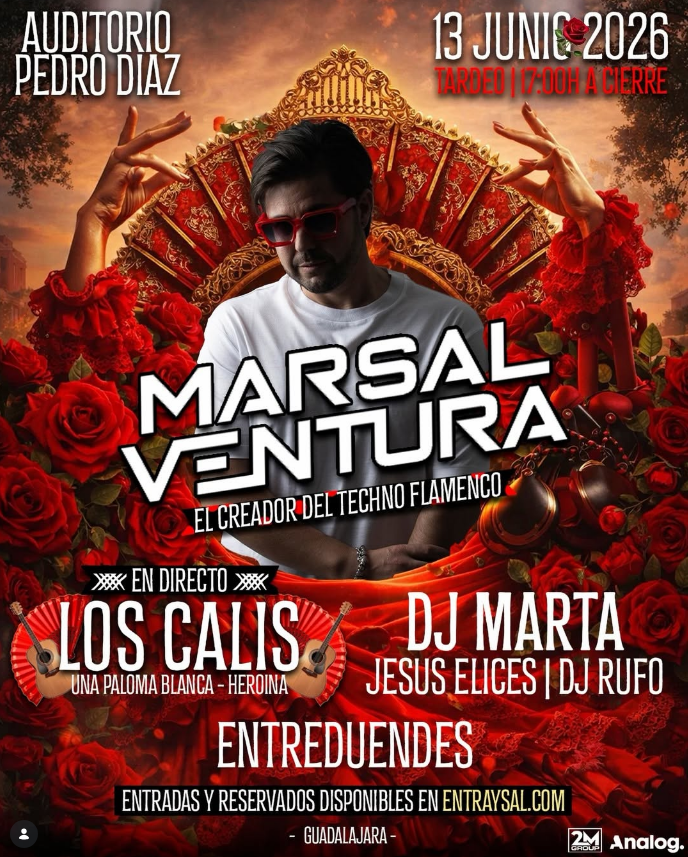 El 13 de junio de 2026, el Auditorio Pedro Díaz de Guadalajara se llena de arte, electrónica y mucha personalidad con Marsal Ventura, Los Calis en directo, Entreduendes, DJ Marta, Jesús Elices y DJ Rufo.